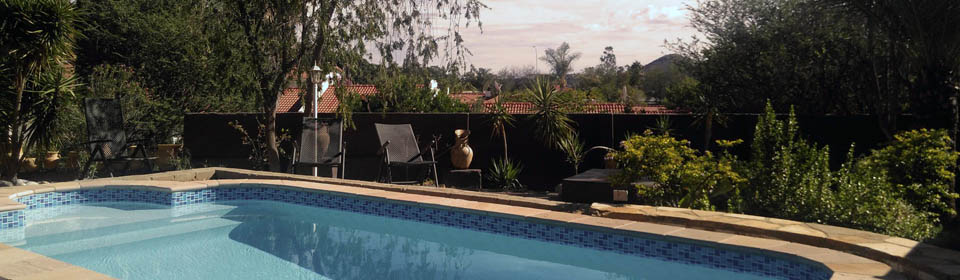 Our lush garden offer a quiet and relaxing atmosphere in the heart of Windhoek. Take a walk around the property and you will encounter beautiful indigenous trees, bushes, plants, palms and flowers that offer a habitat to many birds, butterflies and other small animals, like the rock hyrax. Each of our rooms has a small veranda in order to enjoy the outdoor life.